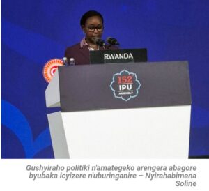 Visi Perezida wa Sena y’u Rwanda, Nyirahabimana Soline, yagaragarije amahanga ko inteko zishinga amategeko zigomba kongera imbaraga mu gushyiraho politiki n’amategeko arengera abagore, agamije kububakira icyizere no kubaha uburinganire busesuye.