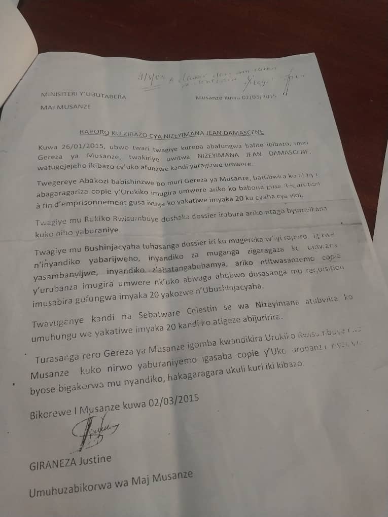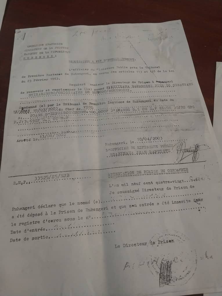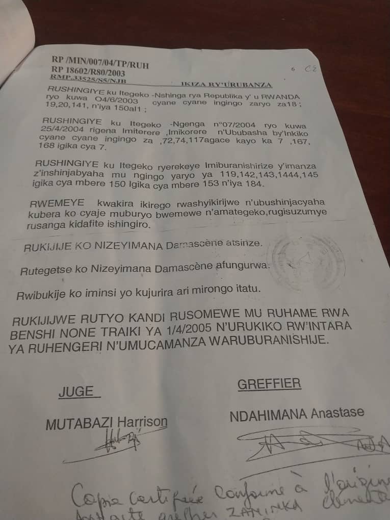 Nk’uko byasobanuwe n’Urukiko mu rubanza RP/MIN/007/04/TP/RUH; RP18602/R80/2003 na RMP 33525/S5/N.JB, rwaciye n’Urukiko rwisumbuye rwa Ruhengeri [Rwitwaga urwa mbere rw’iremezo rwa Ruhengeri], uyu NIZEYIMANA JDamascène yafunzwe by’agateganyo muri Gereza ya Ruhengeri ariryo Gororero rya Musanze uyu munsi, afungwa ku cyemezo cy’umushinjacyaha Nsabimana Jean Baptiste kizwi nka “Recquisition à fin d’emprisonnement” cyamusabiraga imyaka 20 y’igifungo ku cyaha cyo gusambanya umwana noneho abayobozi b’Igororero babifata nk’aho yakatiwe kandi urukiko rwaramugize umwere. Bityo, abayobozi b’Igororero babifata nk’igihano cy’igifungo cya kabiri, ubwo bafata iriya myaka 20 bongeraho 2 yose hamwe iba 22.