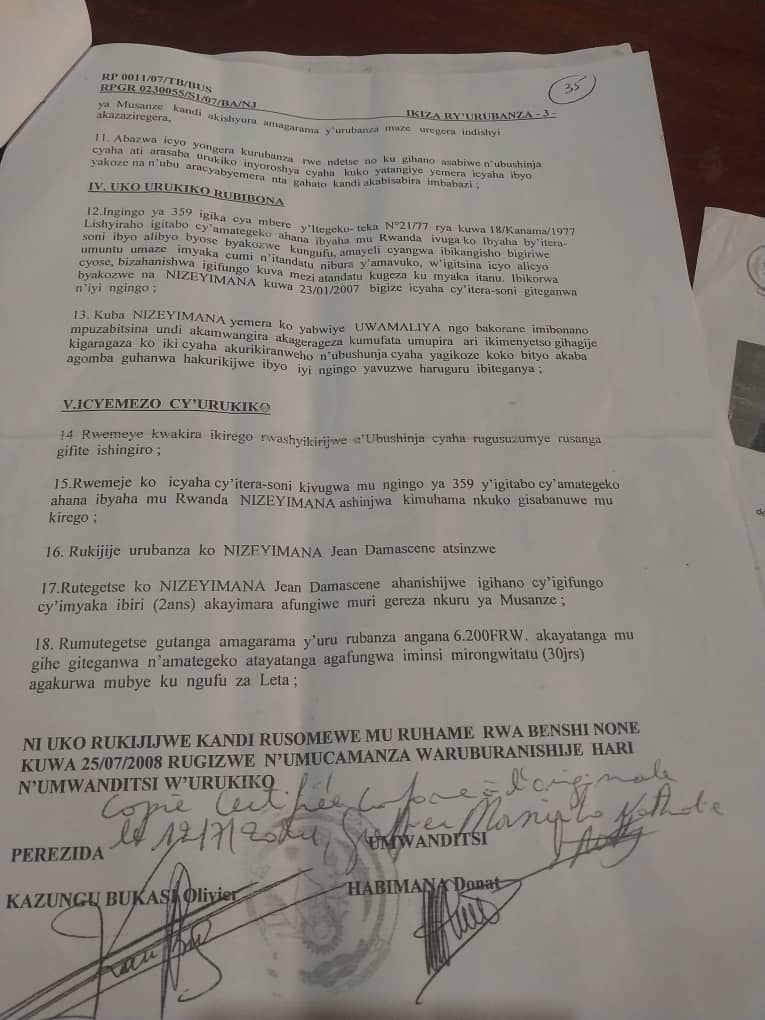 Abajijwe ku bijyanye n’ako karengane avuga yakorewe niba ntacyo ubuyobozi bwamufashije, NIZEYIMANA J.Damascène avuga ko ntacyo gusa ko afite umunyamategeko uri kumufasha ngo amuhuze n’inzego zakagombye kuba zaramuhaye ubutabera ariko ko nta kiragerwaho.