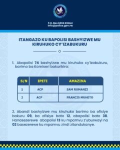 Itangazo rya Polisi y’Igihugu ryo kuri uyu wa Kabiri, tariki ya 2 Ukuboza 2025, rivuga ko mu bashyizwe mu kiruhuko barimo ACP Sam Rumanzi wabaye mu buyobozi bwa Polisi y’Igihugu bukuru burimo kuba Umuhuzabikorwa w’urwego rwunganira akarere mu by’umutekano/ DASSO ku rwego rw’Igihugu.